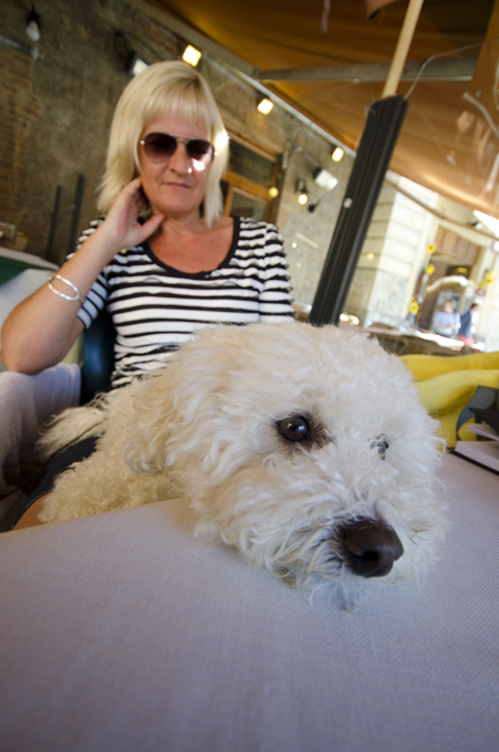 Poppie on Campo table Published May 23, 2011 at 451 × 680 in Siena Poppie relaxes and watches the Campo pass by on a Sunday morning.