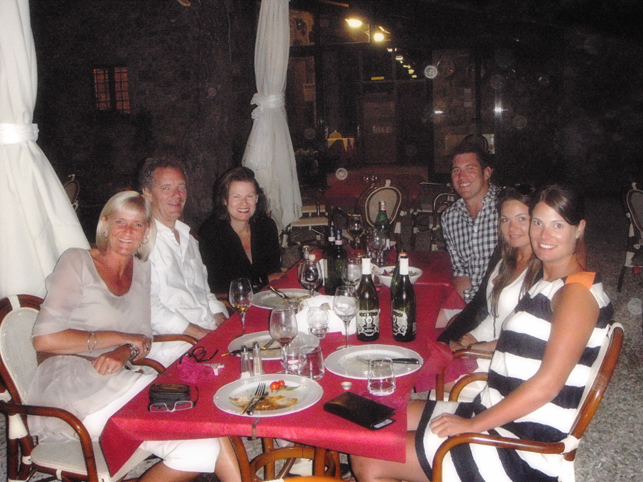 There was a little “pool time” and then dinner in the Campo at Al Mangia. Because the Campo is being prepared for the Palio on Saturday 2 July, barriers and stands are in the process of being erected and we had dinner in what is soon to be the middle of the racecourse on 3 inches of hard packed clay with race barriers on each side. Imagine having dinner on the finish line at Trentham racecourse and you’ll get the idea.