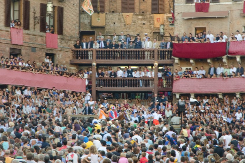 Near the start Published August 18, 2011 at 1020 × 676 in The day we didn’t get thrown out of the Palio Somewhere in there are the riders, horses and the track