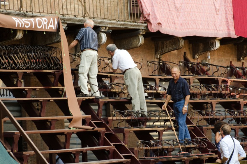 Preparing the bleachers Published August 18, 2011 at 1020 × 676 in The day we didn’t get thrown out of the Palio Preparing the bleachers for spectators