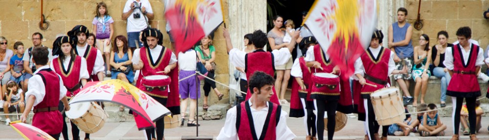 When we arrived, the main Piazza in Pienza, Piazza Poi II was full of flag wavers and drummers performing. Following that, and slightly less spectacular, was the presentation of a painting of the Palio by a local arist and the branding of the cheeses used for the cheese rolling later in the festival.