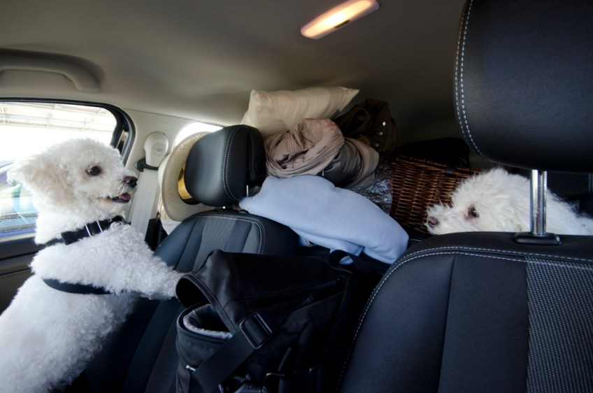 Pups in the car Published November 3, 2011 at 1020 × 676 in Pups on tour – a feeble excuse for yet another cheesy dog photo Packed car en-route to Positano