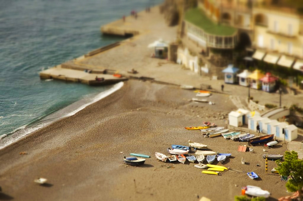 Positano Beach in Autumn with a tilt/shift effect added. Published November 16, 2011 at 1024 × 678 in Out and about in Positano Positano Beach in Autumn with a tilt/shift effect added