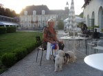 - Poppie relaxes over coffee at Chateau Etoge