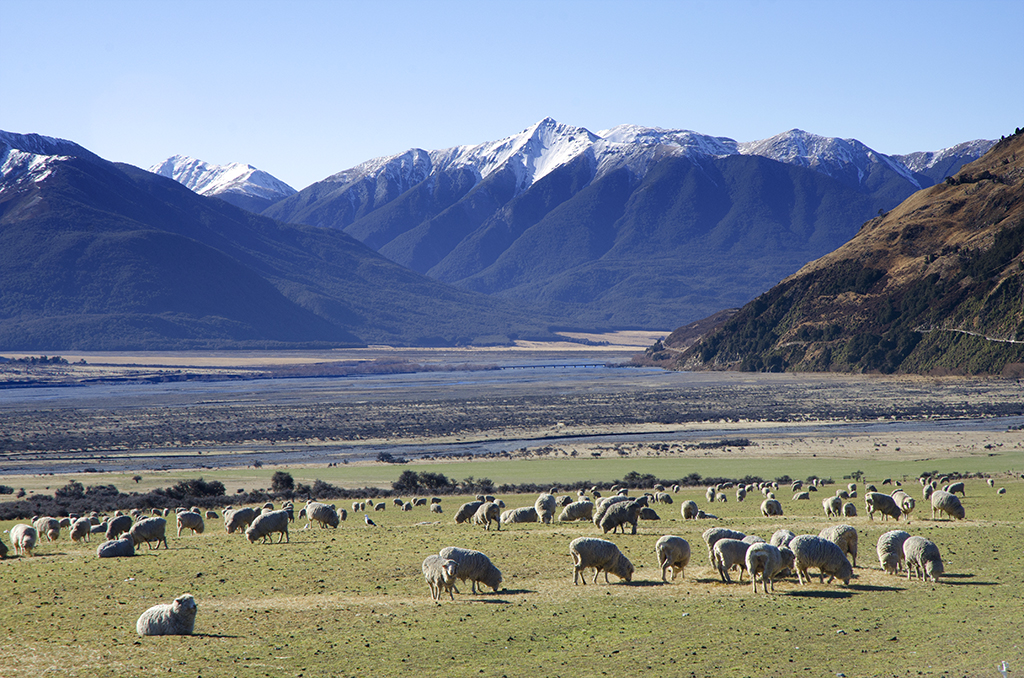 The quintessential New Zealand scene – sheep and mountains Published July 27, 2012 at 1024 × 678 in A South Island road trip The quintessential New Zealand scene – sheep and mountains