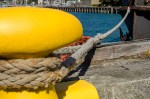 - Bollard and line securing the floating crane Hikatia