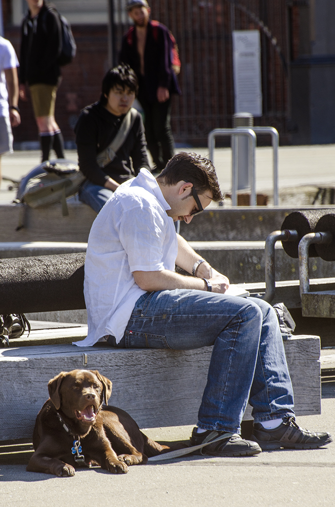 Man and dog relaxing in the sun Published November 18, 2012 at 678 × 1024 in Wellington’s wonderful waterfront Man and dog relaxing in the sun
