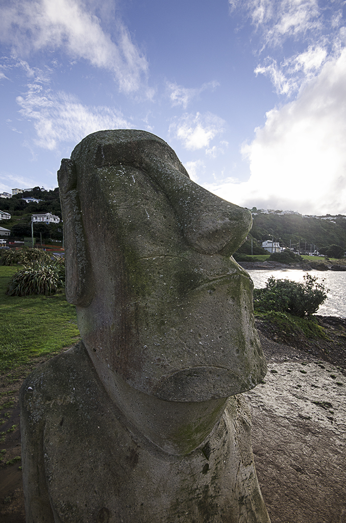 An Easter Island statue gifted by Chile sitting watching Lyall Bay Published June 22, 2013 at 678 × 1024 in An escape to the south coast – Part 2 An Easter Island statue gifted by Chile sitting watching Lyall Bay