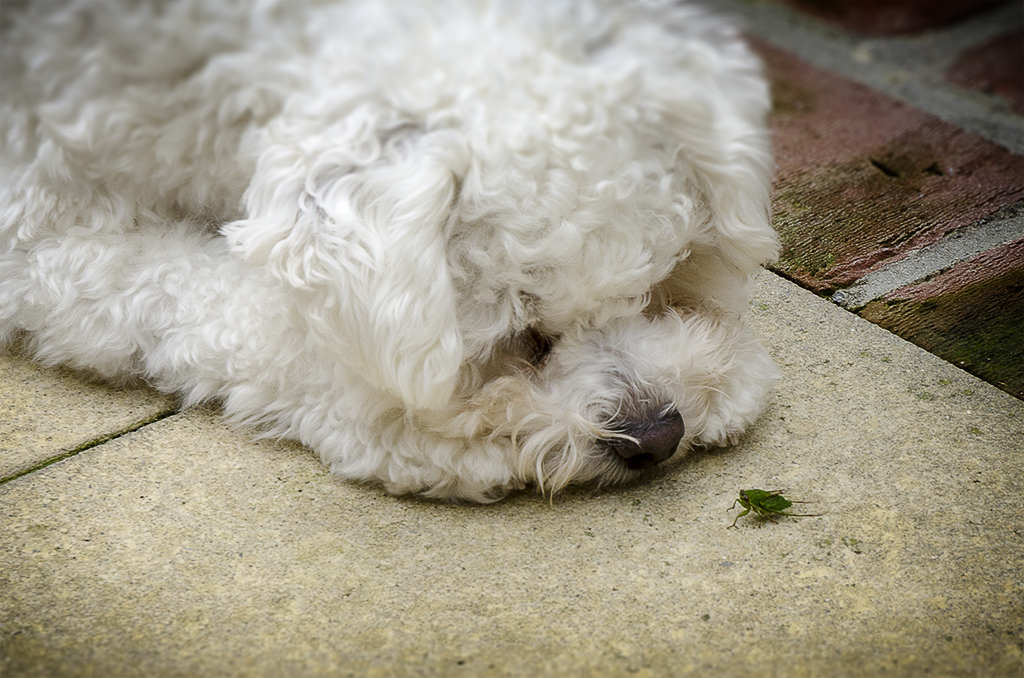 Bella fascinated by a bug