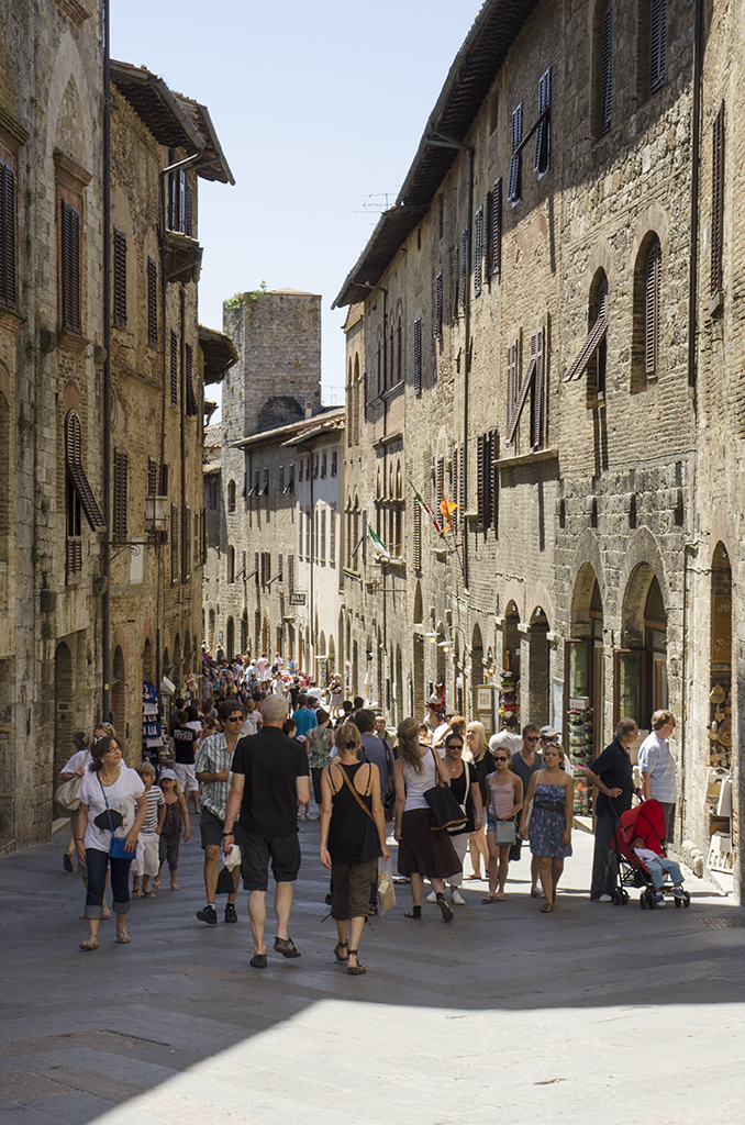Via San Matteo during peak season Published March 28, 2016 at 678 × 1024 in San Gimignano – quintessentially Toscana Via San Matteo during peak season