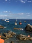 Sunday was spent on the water with them – slowly working our way down the coast towards Amalfi – swimming in the ocean and lunching at a restaurant on the beach. A great day out – despite a choppy return to Positano in the evening as the wind and waves had got up a bit. Our Captain Enzo was an absolute master steering the boat using his left leg against the tiller as he stood proudly looking ahead – like Ahab searching for the white whale.