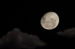 Tonight was close to a full moon, and as it rose over the horizon and cleared a bank of clouds I managed to capture this shot.