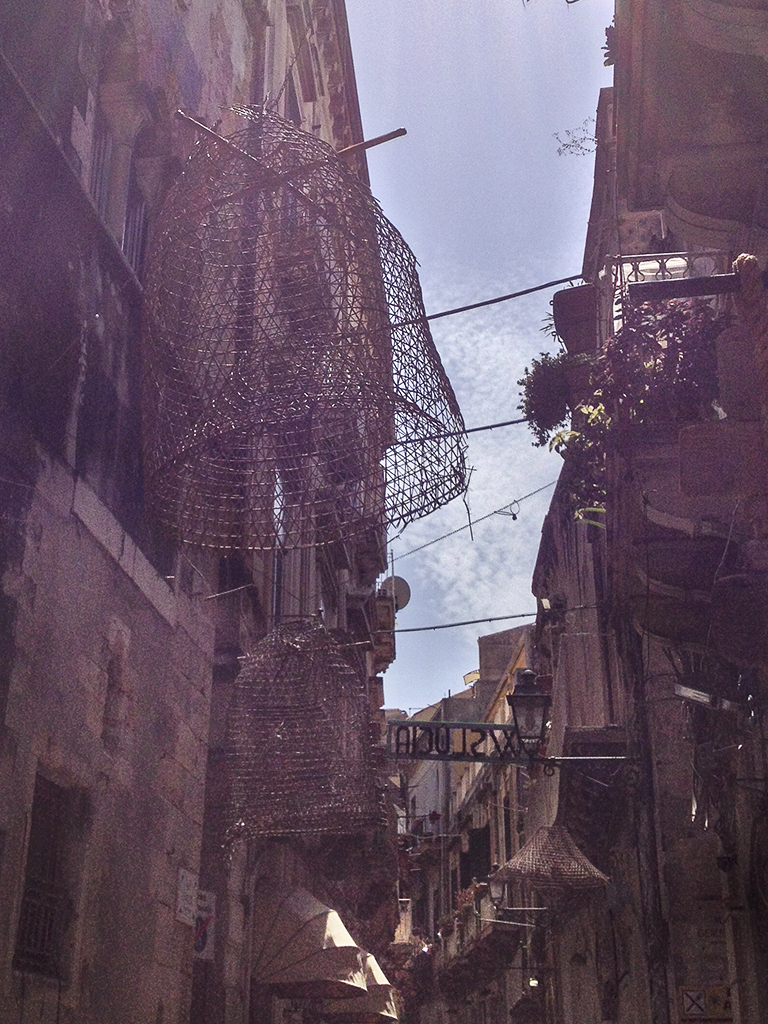 Shrimps nets hung above the streets
