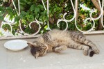Casetta Arienzo comes with its own cat. It’s a little tabby cat with one eye, an insatiable appetite and a tail that never stops moving. It’s on our door step every morning when we get up and every night when we go to bed. It lies in the shade on the verandah when we are at home or out and about. It has decided it’s our cat.
