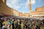 Saturday 2 July is the day of the Palio in Siena. The day horses representing the various contrada or districts of Siena race around the Campo for glory. We are heading south to Positano that day but were in Siena on Thursday evening and got wrapped up in the rehearsal for the Palio where they test the race track (and presumably the other things that go with the race).