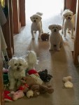 Macey and Georgie came to stay and for two days our house was a sea of moving Bichons. Wherever you looked there was a pair, or three, or four dogs playing, eating, sleeping or barking at the gate.