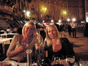 After the Palio rehearsal waiting for our bar to set up tables so we can have a drink