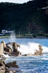 Waves breaking over the wharf at Positano