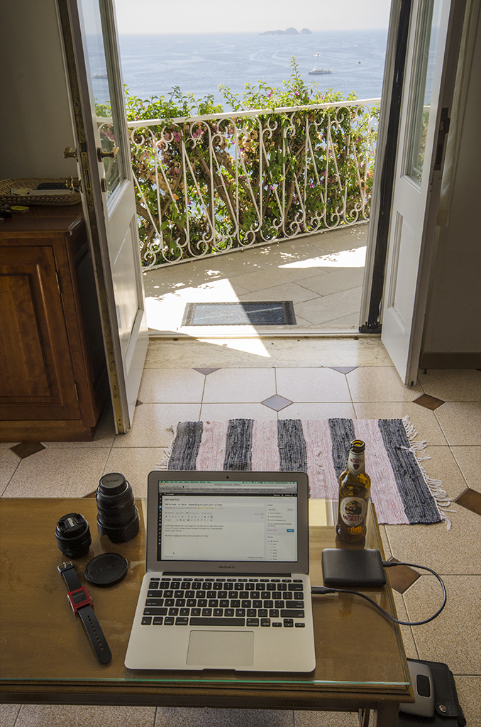 After 3 days travelling by plane, train and automobile we have arrived in Positano. Along the way we spent 3 hours in Auckland, 4 hours in Hong Kong, 25 hours in the air and a day and a night in Rome.